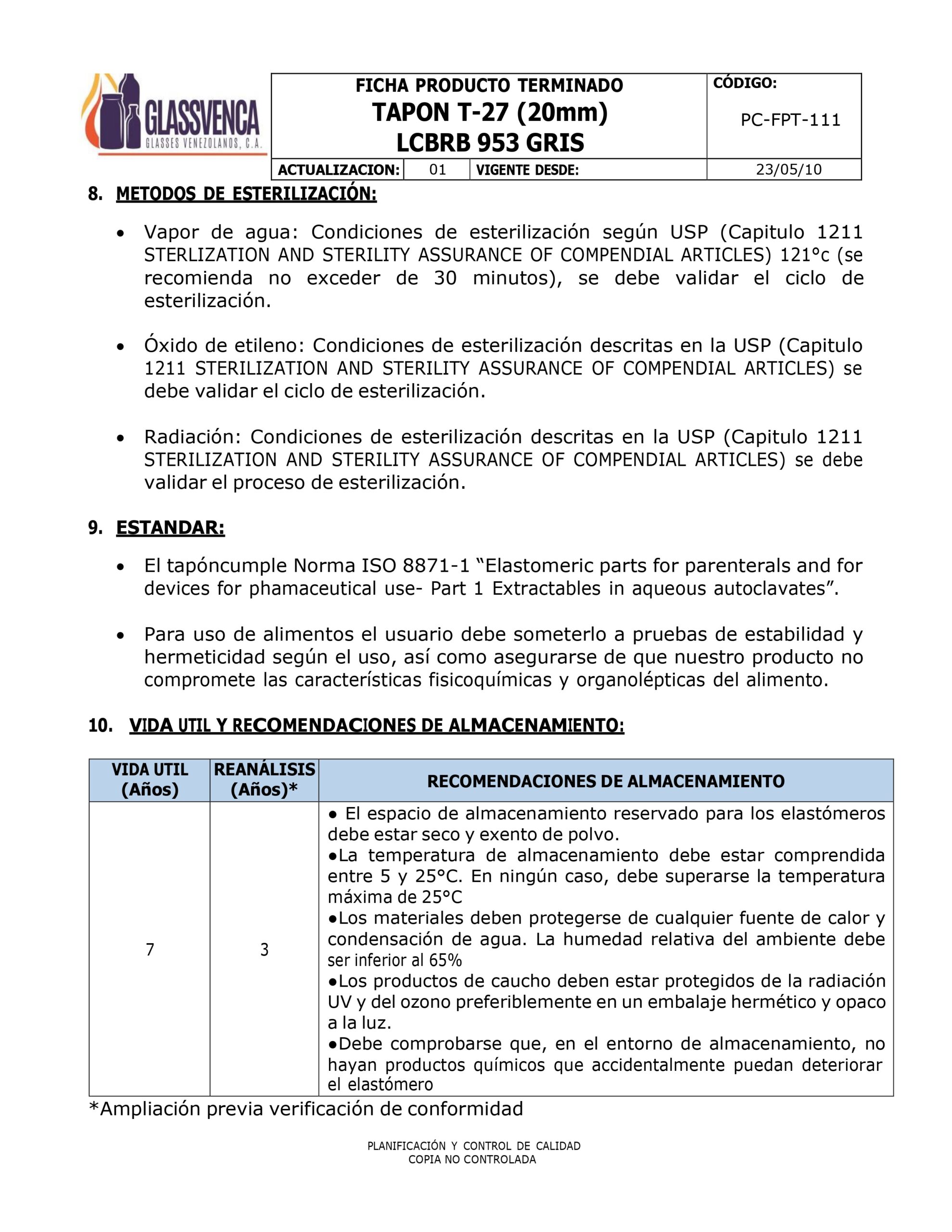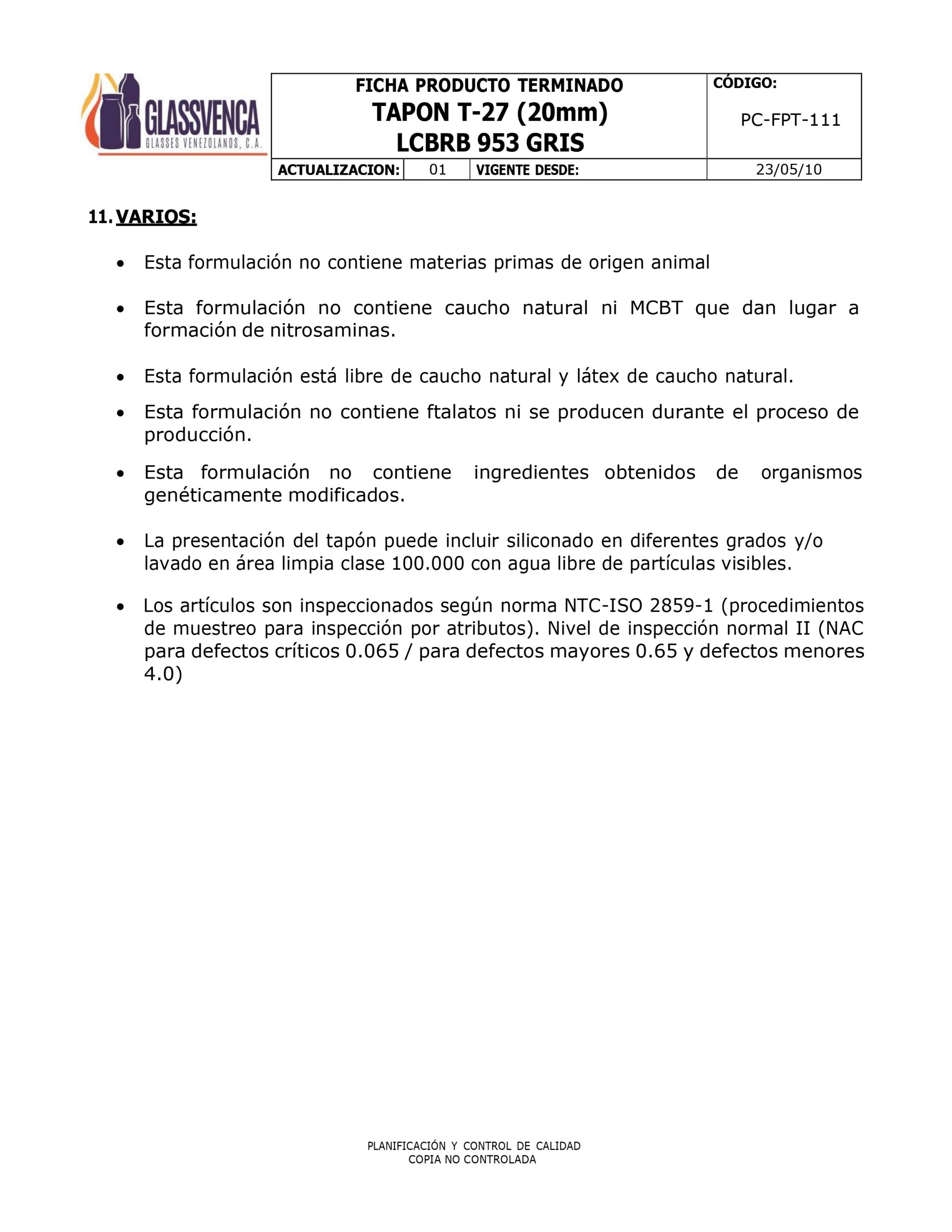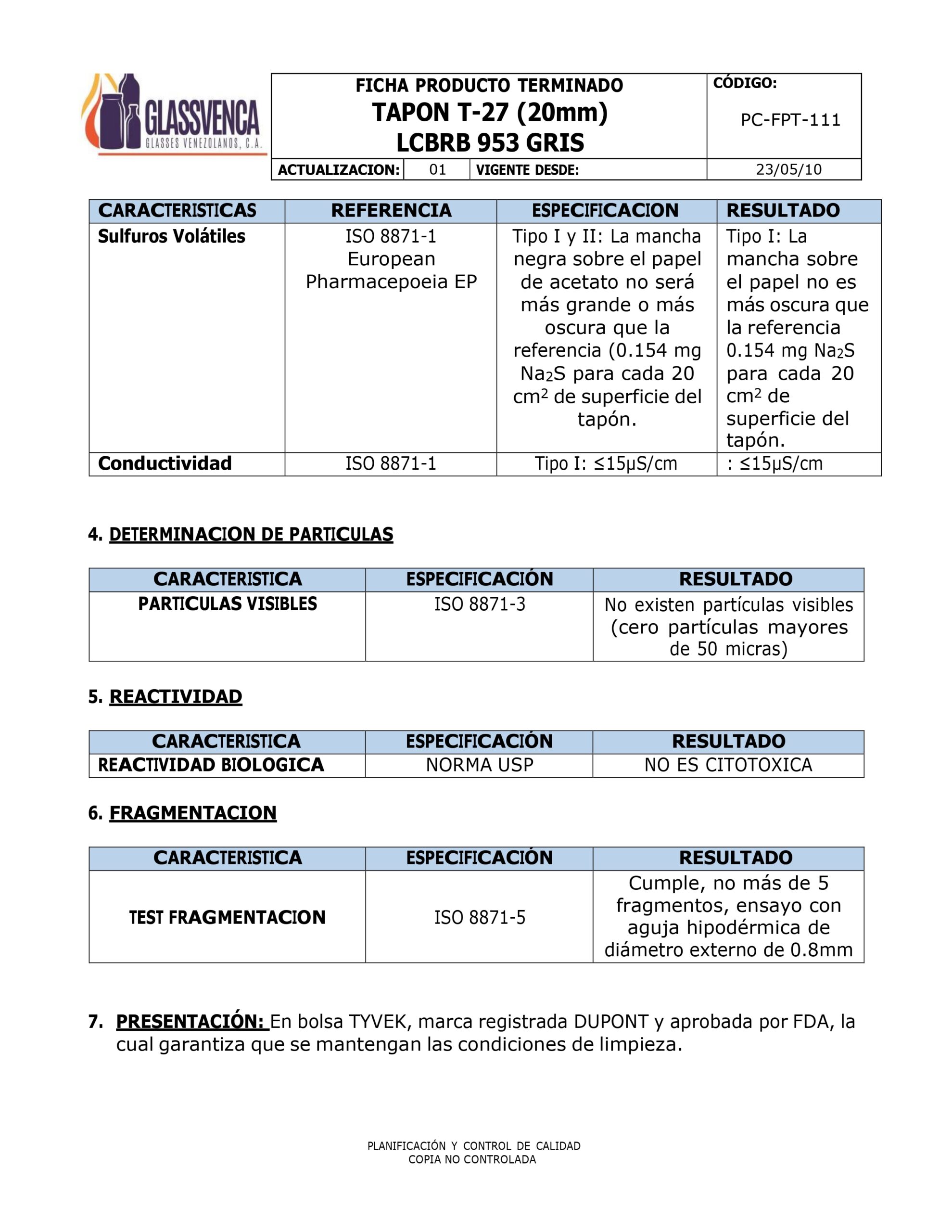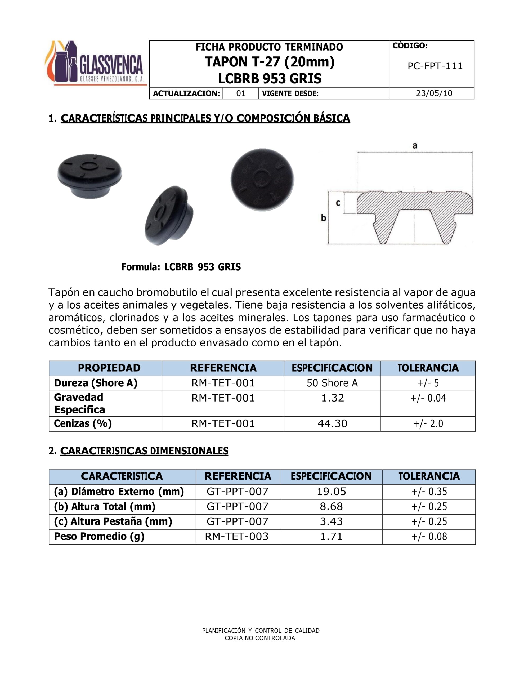 DESCRIPCIÓN: TAPON GRIS DE BROMOBUTILICO 20 MM