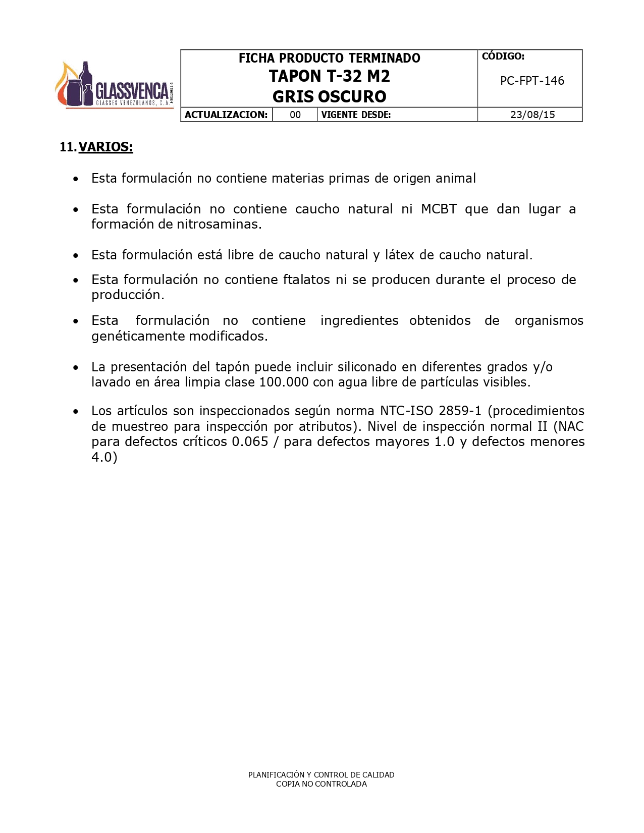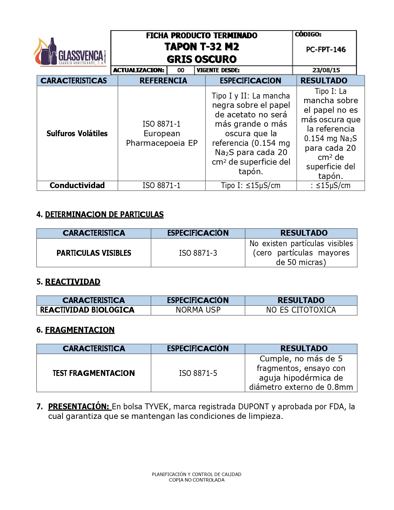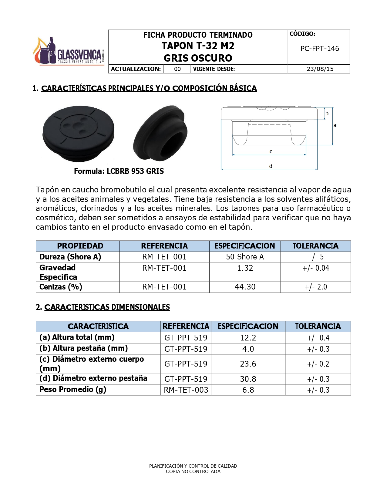 DESCRIPCIÓN: TAPON GRIS DE BROMOBUTILICO 32 MM